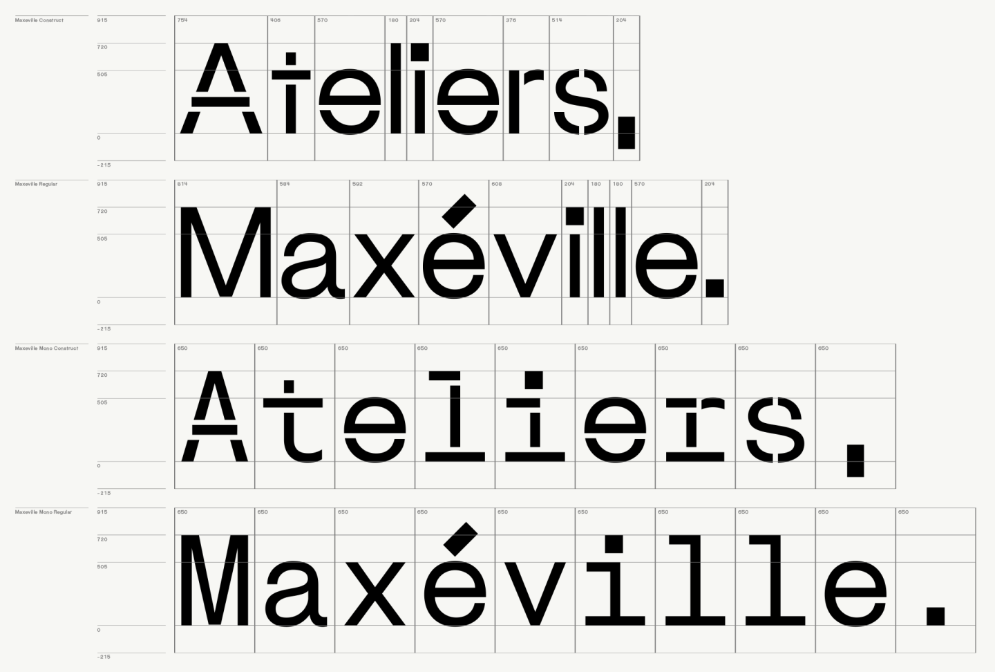 Maxeville is a neo-grotesk typeface with geometric properties, inspired by the visual language that accompanied art and design movements from the early 20th century, such as De Stijl (The Netherlands) and Union des Artistes Modernes (France).
